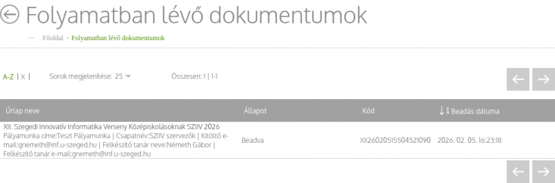 A beadást követően ellenőrizze e-mail fiókját, mert a rendszer automatikus üzenetet küld a beadásról. |