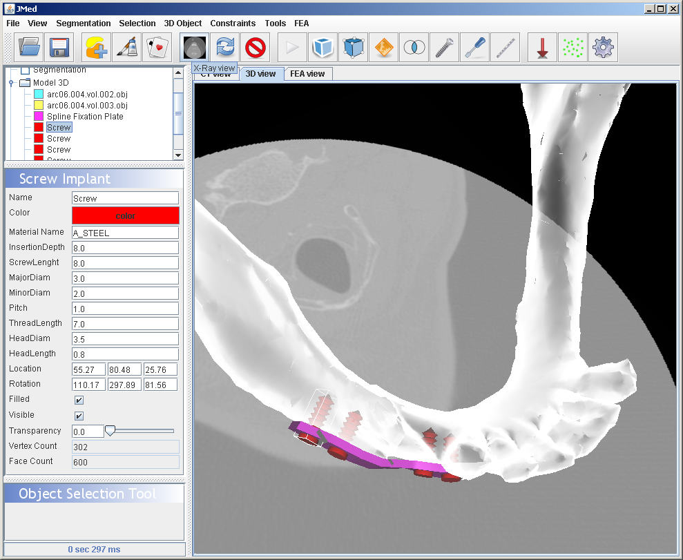 X-Ray view of the surgical plan. This view is a real time rendered X-ray simulation.