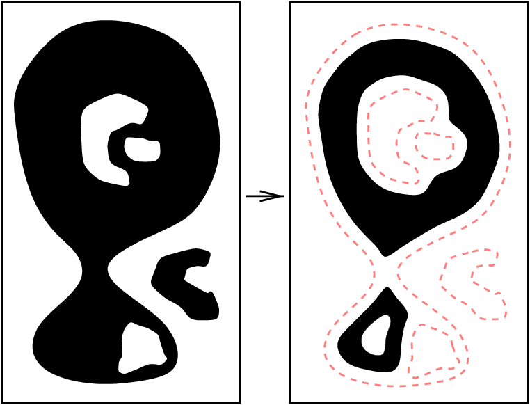 Egyetlen egyszerű képelem törlése - definíció szerint - topológia-megőrző redukció, azonban több elemet tartalmazó képelem-halmazok törlésénél a topológiai korrektség nem mindig áll fenn.