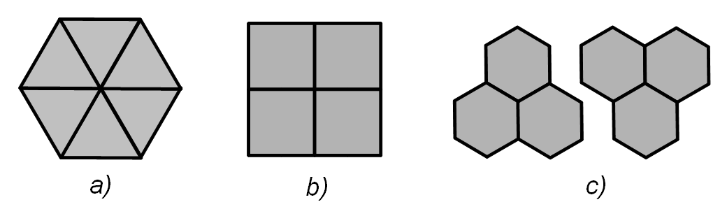 5. ábra. Egység-elemek a háromszög-, négyszög-, és hatszög-mozaikon