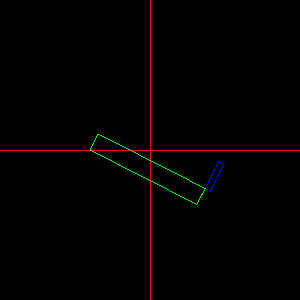 Tégla 02 feladatFeladat: Mint az előző, csak most a Z-tengely körül forgassunk. glPushMatrix(); glColor3f(0.0, 1.0, 0.0); glRotatef( rot1, 0.0, 0.0, 1.0 ); glScalef( 20.0, 3.0, 3.0 ); glutSolidCube( 1.0 ); glPopMatrix(); |