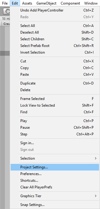 A bemenetek kezelését a Projekt beállításokban lehet elérni. Ezt a menüt elérhetjük az "Edit -> Projekt settings" menüpont alatt.