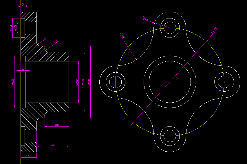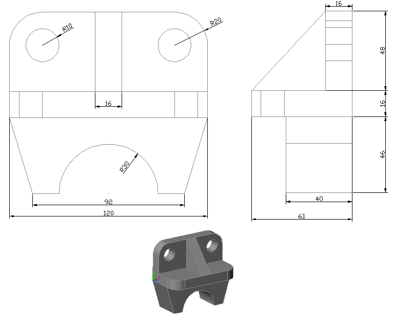 A bal oldalsó vetületek alapján szerkesszük meg a 3D ábrát! A cső