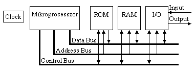 A mikroszámítógépek alapja a mikroprocesszor. Elemei a mikroprocesszor, memória, és input/output eszközök. A komponenseket valamilyen buszrendszer köti össze, amelyen az egységek közötti adatcsere zajlik. A mikroszámítógép blokkvázlata az 1. ábrán látható.