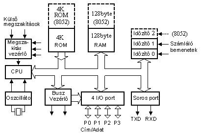 · 8 bites, vezérlési feladatokra optimalizált központi egység (CPU);