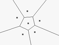 The Voronoi diagram of a discrete set of points (called generating points) is the partition of the given space into cells so that each cell contains exactly one generating point and the locus of all points which are nearer to this generating point than to other generating points.