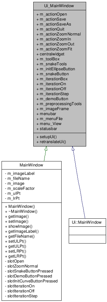 References centralwidget, m_actionOpen, m_actionQuit, m_actionSave, m_actionSaveAs, m_actionZoomFit, m_actionZoomIn, m_actionZoomNormal, m_actionZoomOut, m_demoButton, m_imageFrame, m_initEllipseButton, m_iterationBox, m_iterationOff, m_iterationOn, m_iterationStep, m_menuFile, m_preprocessingTools, m_snakeButton, m_snakeTools, m_toolBox, menu_View, menubar, retranslateUi(), and statusbar.