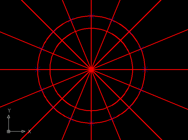 Adjuk ki a felosztás parancsot és osszuk 16 egyenlő részre a külső kör kerületét, pontokat elhelyezve.