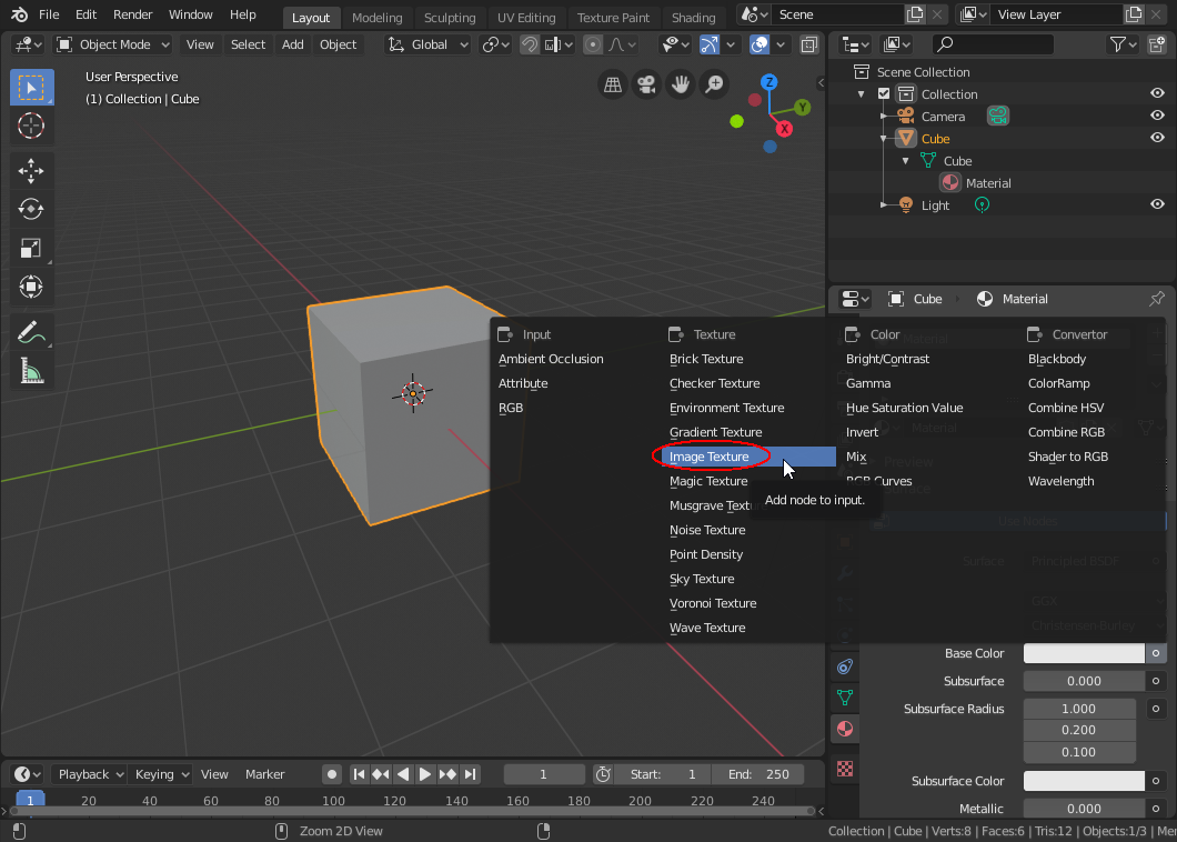- A megjelenő listában válasszuk ki az Image Texture opciót.