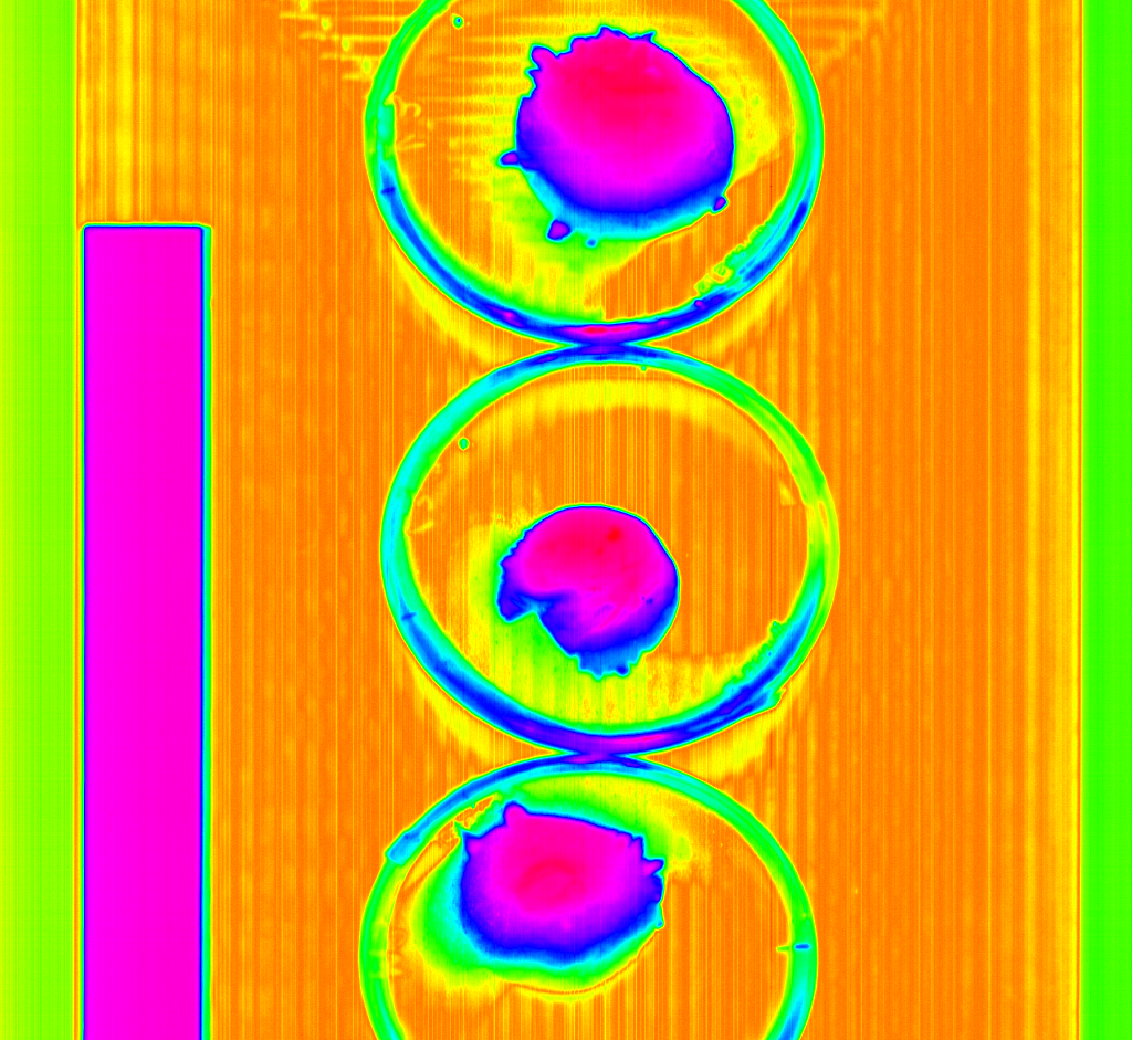 Az 1. napos képen a gombák tetejének közepe már vörösbe hajlik, itt voltak fertőzve. A kék részek az árnyéknak tudhatók be. A 7. napos képen eléggé terjedt a fertőzés, itt a sárga részeket érdemes figyelni. Álszínezés nélkül sajnos nem látszik a különbség. Alakban és méretben azért különbözőek, mert a fertőzés miatt elindult a fertőző gombák fonalasodása, illetve a csiperke is „szétfolyt” kicsit. Az eltérés a két álszínezett kép között azt is mutatja, hogy mennyire megváltozik a spektrális intenzitás a két különböző mértékű fertőzés között, ugyanis, ha nem változna, akkor a referencia test azonos színű lenne.