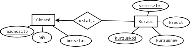 Hogyan képezné le az alábbi egyed-kapcsolat diagramban az oktatja kapcsolatot?