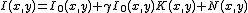 Az I(x,y) jelöli a kép egy pontját. Az I0(x,y) jelöli a zajmentes képi intenzitást, amelyhez hozzáadódik a K(x,y), egy fény-választ nem-uniform zaj (photo-response non-uniformity noise = PRNU) egy γ, valamint egy additív zaj tag.