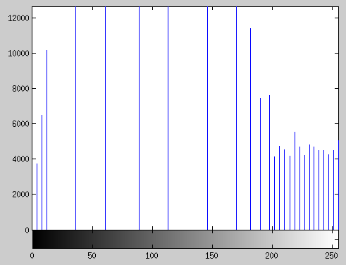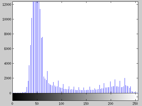 A hisztogram egy statisztika a vizsgált képen található intenzitások gyakoriságáról. A hisztogram vízszintes tengelyén az intenzitás értékékek tartományát, a függőleges tengelyen pedig az egyes intenzitások gyakoriságát adjuk meg.