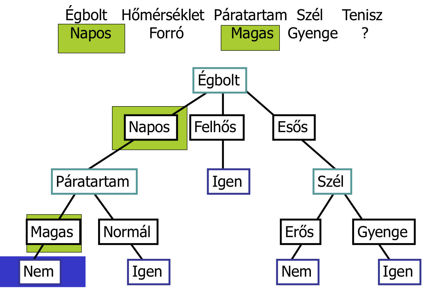 Az alábbi ábrán egy másik lehetséges döntési fát láthatunk a tenisz feladathoz. Figyeljük meg, hogy
