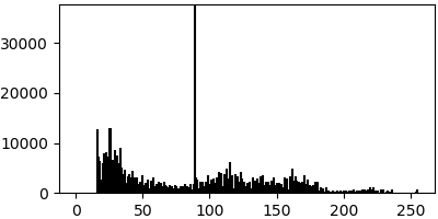 Miért csak 3 kiugró értéket látunk a FrenchCardShapes.jpg kép hisztogramján?
