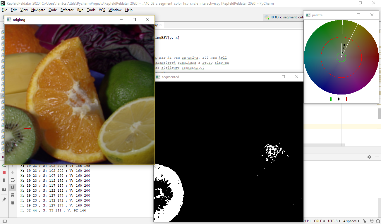 - A csatornák közül a H (Hue) speciális, mivel [0, 180) értéktartománnyal bír, és körkörös az értelmezése. Ez külön vizsgálatokat igényel.