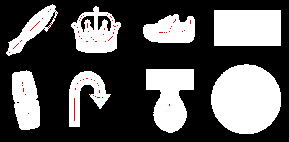 Bináris objektumok esetén szükségünk lehet az objektum középvonalára, vázára. Erre rengeteg szakirodalmi megoldást találhatunk. Az OpenCV sajnos kevés beépített lehetőséget biztosít. Vékonyításra van lehetőségünk a contrib csomagban található ximgproc.thinning() függvénnyel, kétféle implementált algoritmus közül választva.