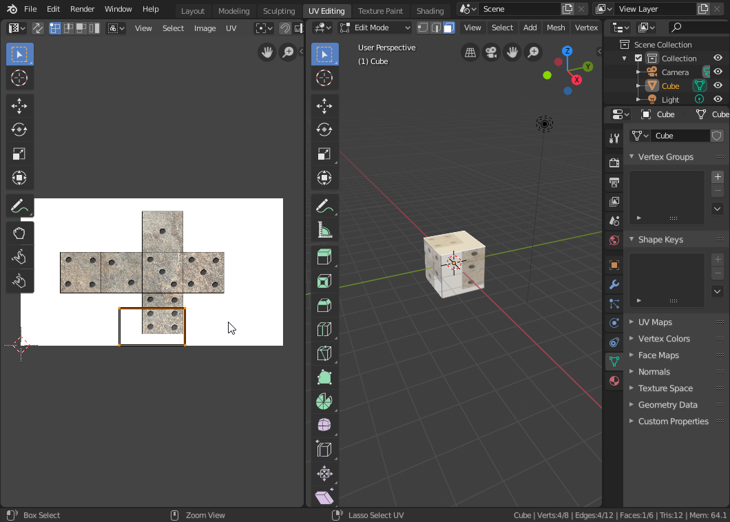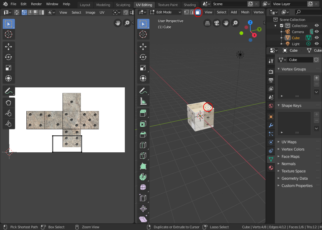 - Váltsunk át UV Editing üzemmódba (Blender főmenü).